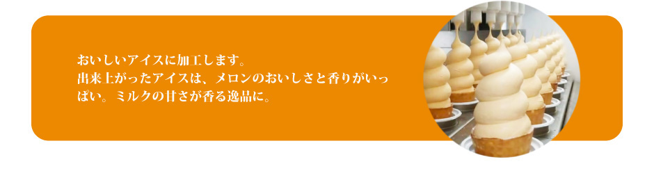 北海道産メロンと牛乳を使った贅沢なおいしさ ひと口食べれば広がるメロンの香り。味わうごとに、牛乳本来のコクが深まる。