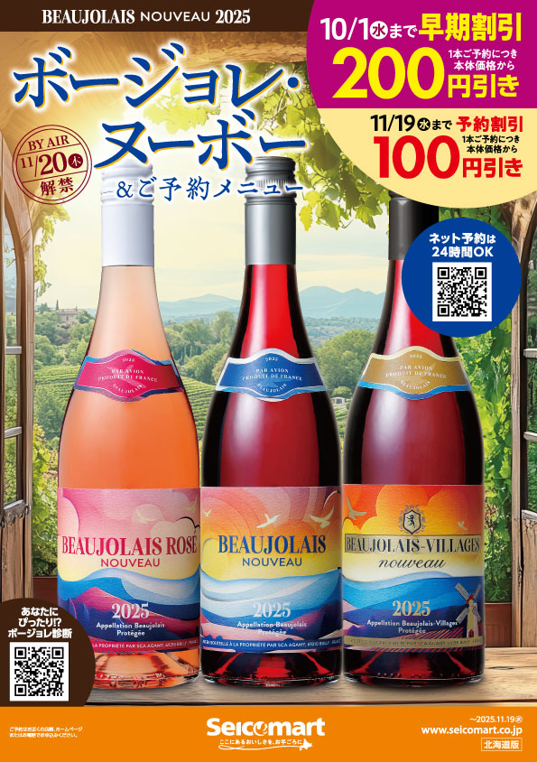 11月19日(水)までのご予約でボージョレ・ヌーボー各種、本体価格から100円引き!
