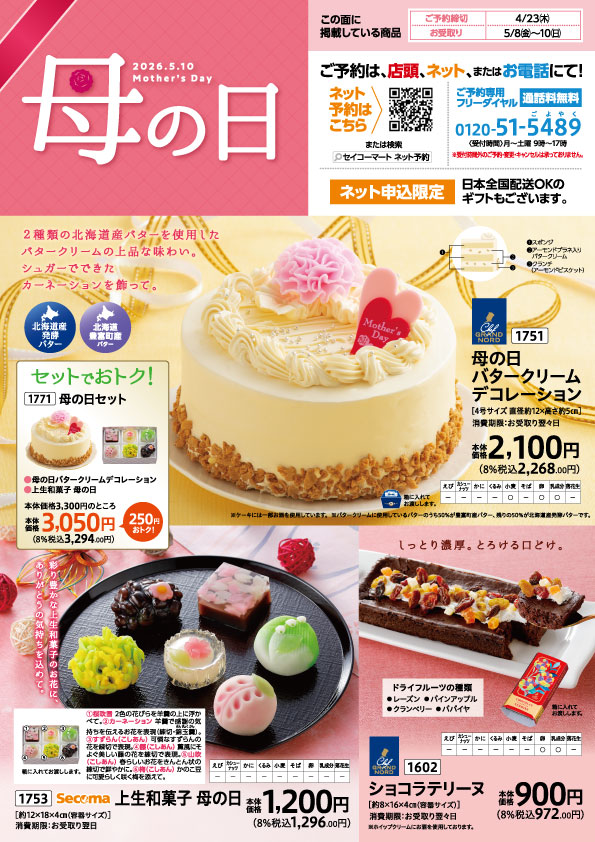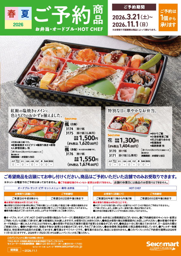 セイコーマートではお弁当やケーキ、オードブル、フラワーギフトなどのご予約を受付中!