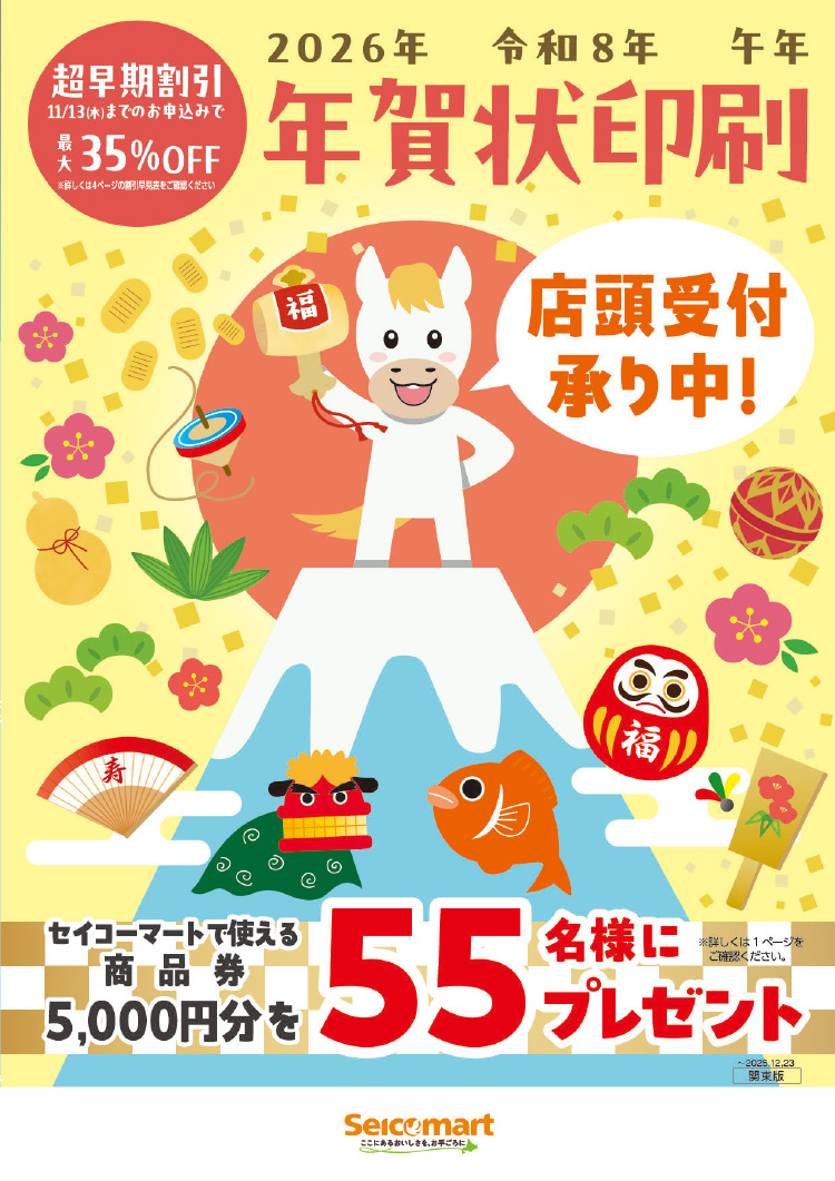 ※年賀状印刷のお申込みは、北海道内の店舗は11月3日(月)までにお申込みいただいた場合、お渡しは11月6日(木)以降となります。それ以降のお申込みは、お申込み日から3日以降のお渡しとなります。