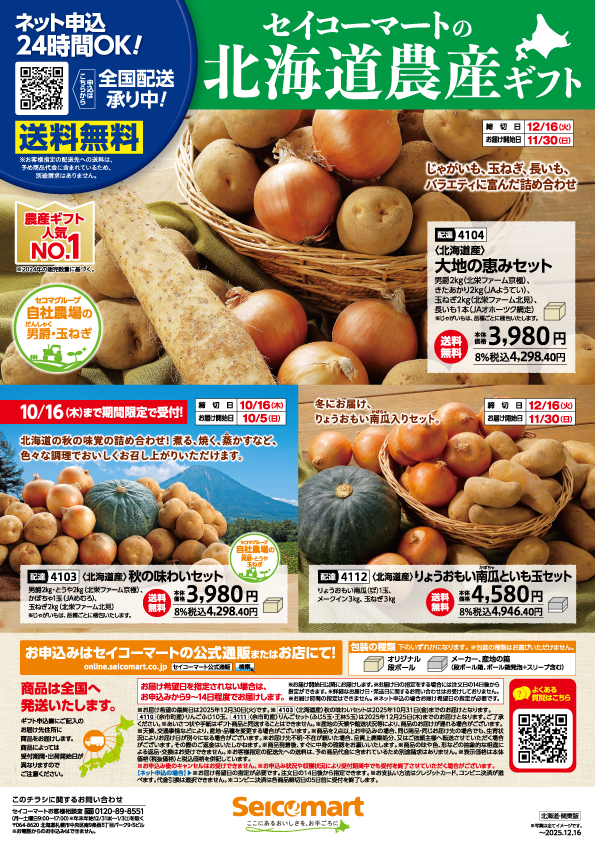 北海道内にあるセコマグループ自社農場のギフトもご用意!