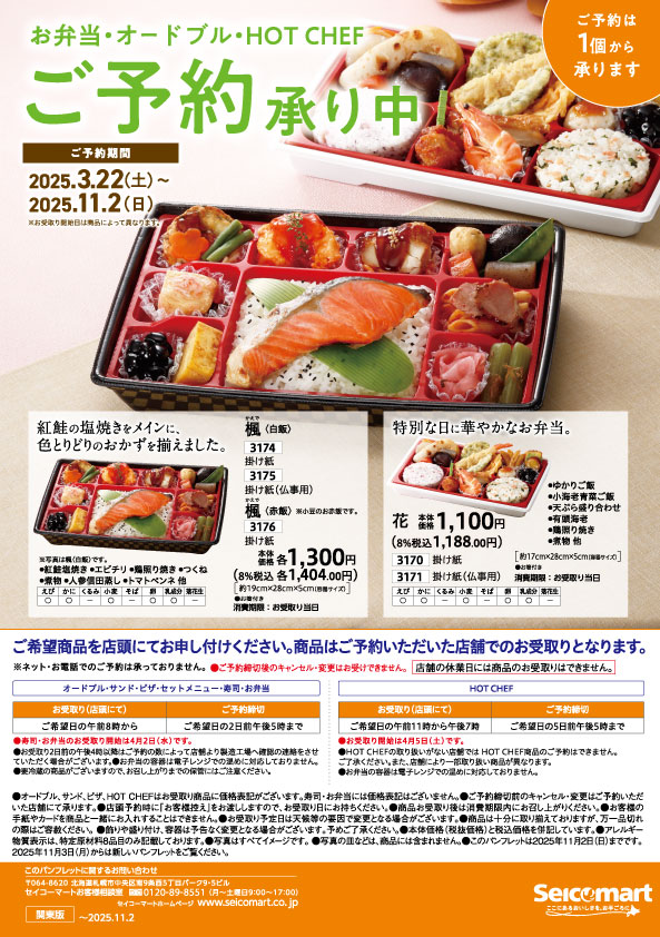セイコーマートではお弁当やケーキ、オードブル、フラワーギフトなどのご予約を受付中!