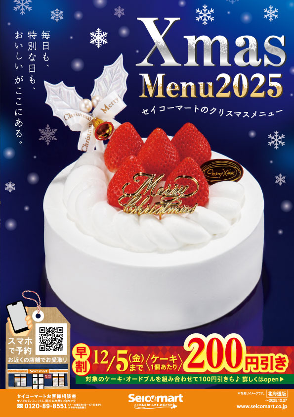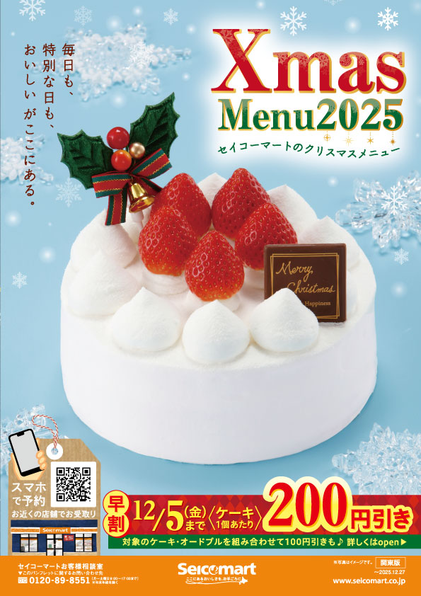 ・クリスマスケーキは12/5(金)まで1個あたり200円引き